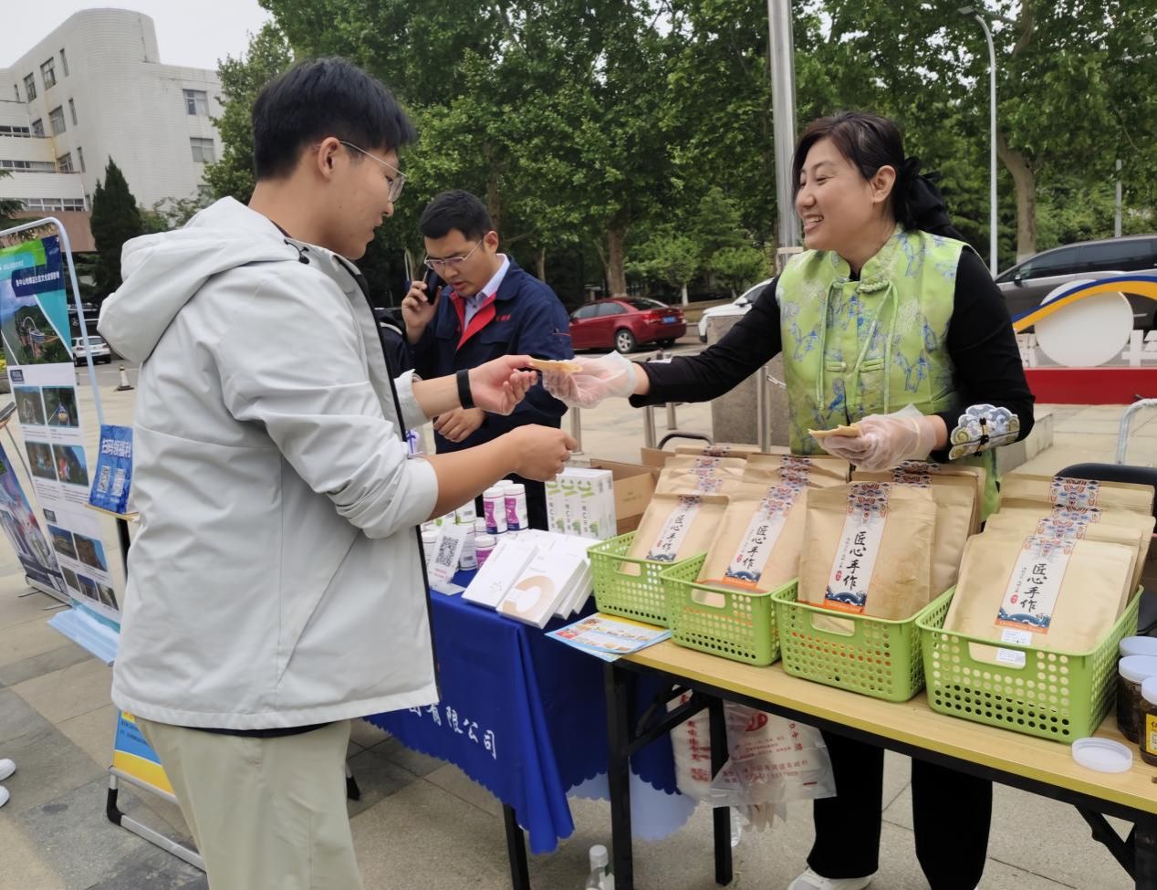 淄川区文旅局工作人员在广场设立了展示点位,通过宣传展板和物料陈列,向师生们展示了淄川区的丰富旅游资源。志愿者分布在活动入口、咨询台等关键点位,不仅协助发放景区门票,还耐心解答师生们关于景区特色和游览攻略的咨询,引导群众有序参与活动,确保了活动的顺利进行。他们还运用自己的专业知识,协助展示点位进行宣传,他们的专业态度和热情服务,不仅保障了宣传活动的平稳有序进行,也为文旅学子提供了实践锻炼的平台,深化了他们对地方文旅的了解与热爱。