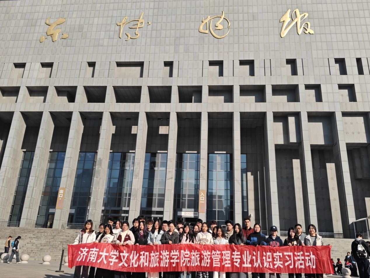 在济南绿地美利亚酒店和鲁能希尔顿酒店,学生通过实地参观、交流座谈与现场模拟等途径,学习了酒店的拷贝漫画、服务设施配置、各岗位的工作内容及服务要点等。在山东博物馆,学生现场分组模拟导游讲解,领略了山东的历史文化和地域特色,对文创商品设计与开发、业态布局及展品数字化展示进行了全面了解。在大明湖景区,学生对景区旅游资源的分布、功能分区与商业设施进行了深入考察,并分组开展了关于大明湖景区新业态与旅游新市场的问卷调研工作。