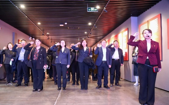党课现场,党员同志观看了基地主题展览《穿越时空的党课》,一幅幅珍贵的照片、一个个感人的事迹、一件件烙印历史的展陈,让大家长久驻足、震撼不已。每一个可歌可泣的篇章都记录着中国共产党走过的坚实脚印。通过听讲解、读文字、观实物,全体党员对山东早期党组织浴血奋斗的发展历程和邓恩铭、刘谦初等22位革命先烈的光辉事迹有了深刻的理解和认识,对那段血雨腥风的峥嵘岁月有了真切的体会和感悟。熠熠生辉的历史长河中,刻录着无数共产党员人以青春、热血和生命书写的苦难辉煌,这是我们接续奋斗的力量之源和坚定信念的力量之源,同时也体现了党的初心使命。“四五”烈士矢志不渝、视死如归、献身革命的壮举,深深感染着每一位党员。最后,大家面向党旗,同举右手,重温入党誓词,表达了对党的崇高信仰和真挚情感。