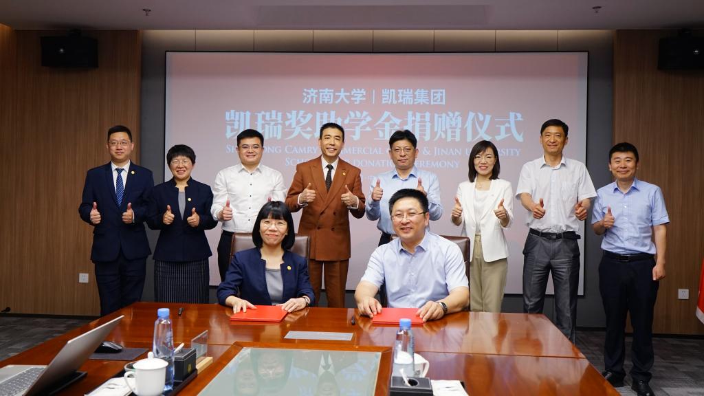 仪式上,学校合作发展处处长、教育发展基金会秘书长卢旺与凯瑞商业集团人力资源中心总监胡嘉签署教育发展基金捐赠协议。杨景波与赵孝国共同为拷贝漫画