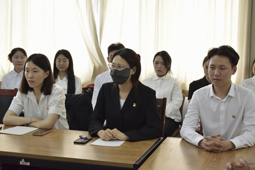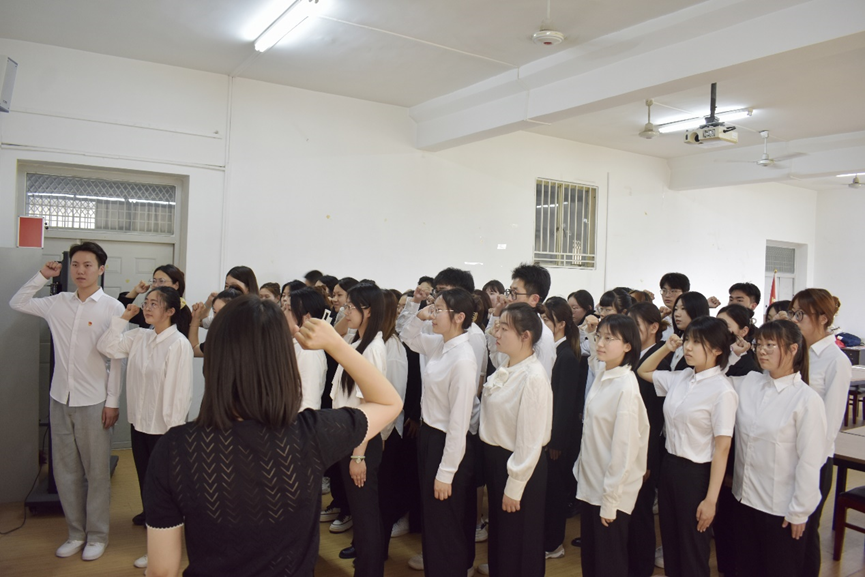 大会严格按照预备党员接收大会流程进行,首先由韩佳怡等30名发展对象宣读入党志愿书,分别从对党的认识、入党动机、本人履历、家庭和主要社会关系情况、以及需要向党组织说明的问题等方面进行汇报。入党第一介绍人吕龙飞老师和第二介绍人赵军老师分别对韩佳怡等30名发展对象的表现给予了肯定,并指出存在的不足之处,同时鼓励他们要加强对党史教育的重视,提升自身党性修养,希望他们在接下来的学习、生活中能够更好的做好引领作用,积极主动担当作为一名党员应有的责任。随后,由学生第一党支部书记张莉向大会报告支部委员会对发展对象的审查情况,与会预备党员本着客观公正、认真负责的态度,对30位发展对象进行讨论评议,在肯定他们努力付出和取得成绩的同时,也指出了一些有待改善和提高的地方。经现场党员无记名投票表决,同意韩佳怡等30名发展对象接收为中共预备党员。大会最后,在学生第一党支部书记张莉的带领下,全体党员在党旗下,高举右拳庄重宣誓,本次大会顺利落下帷幕。