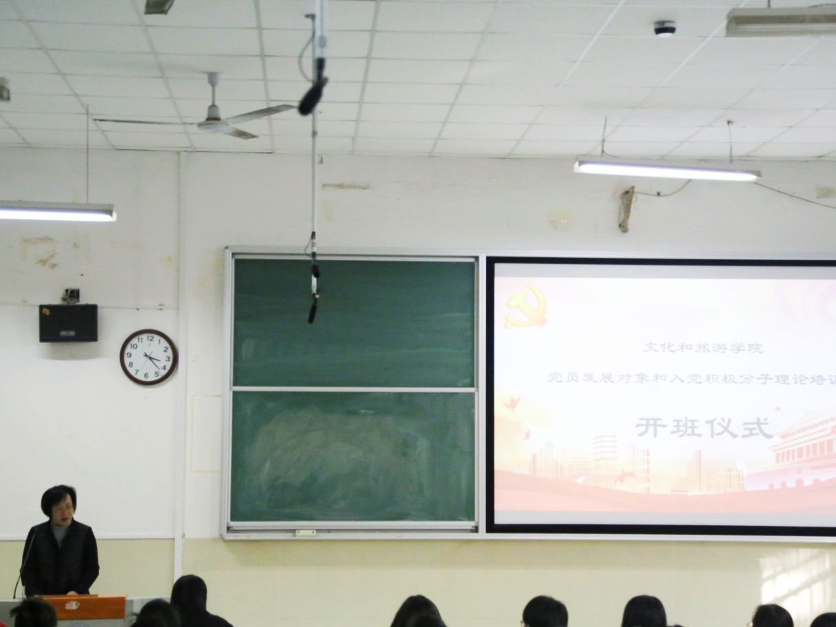 开班仪式由学院团委书记吕龙飞老师主持。随后,学院党委副书记信苏珊开班动员并宣读培训实施方案。她强调,学员们不仅要争取在组织上入党,更应做到在思想上入党,在思想上不断端正入党动机,加强对政治理论知识的学习,提高党性修养。在实践中践行全心全意为人民服务的宗旨,从身边点滴做起,争做模范先锋,发挥模范带头作用。副处级组织员李蘋接着宣读培训班纪律要求并对培训班学员提出殷切希望和具体要求。随后,管潞凝作为学员代表发言,她阐述了对中国共产党的认识,并讲述自己在思想、学习、实践三个方面的具体行动。她希望学员通过培训班学习,都能够有所收获,有所提高,为中华之崛起,为民族之复兴,尽自己的责任和义务,做一名思想政治素养高,文化知识学得好的优秀新青年。最后,学院党委书记孟德洋以“提高觉悟修养,发挥先锋模范作用”为主题讲授党课。他从思想和教育两个方面对学员提出具体要求。思想上,他要求学员坚定理想信念。他将学员拉回历史的长河体会中国共产党的来之不易,正是由于中国共产党的坚定信仰才保持了党的积极性和先进性。教育上,他要求学员具有吃苦耐劳精神并做到学习工作两不误,在荣誉面前不争功,在成绩面前不骄傲。党员是中国共产党的骨干力量,学员要在任何时刻牢记党员标发挥模范先锋带头作用。