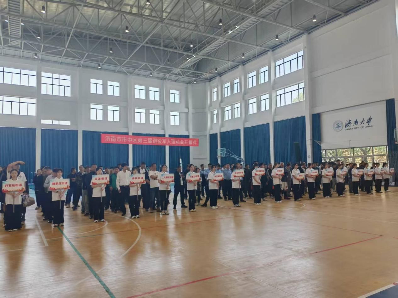 舜耕校区体育馆开幕,各街道均派出代表队参与本次开幕式。志愿者手持街道标识牌,引导各队列入场站位。在开幕式中,退役军人们观看了拷贝漫画