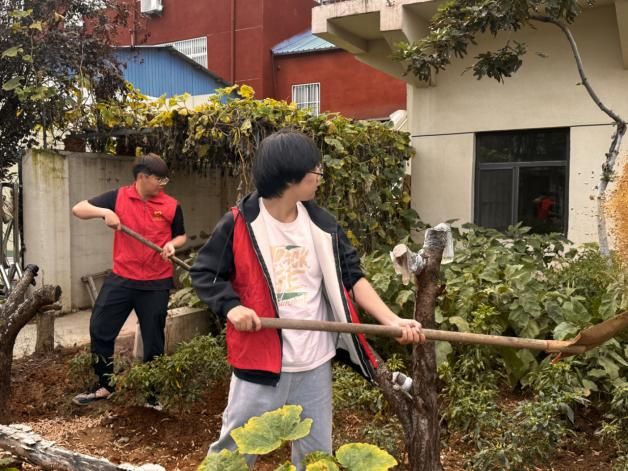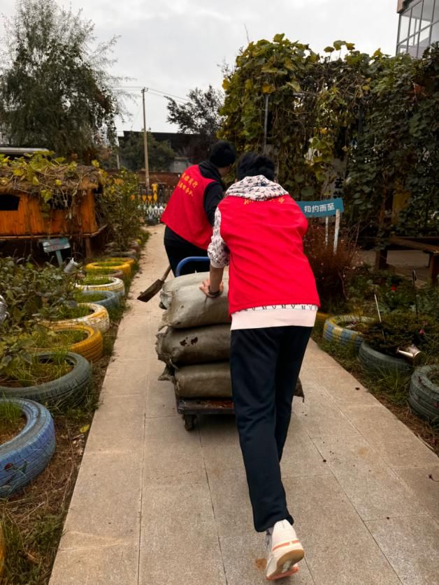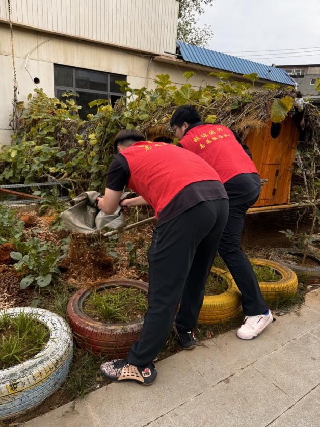 花园施肥后,“卫生清洁行动”紧接着开展。志愿者们拿起扫帚、抹布等,一起清理花园、教室。他们分工协作,凭借团队配合以及高效的服务能力,很快就为孩子们创造了一个干净整洁的成长空间。在无声的劳作中,志愿者将“对他人负责、对环境尽责”的意识悄悄传递,让干净的空间不仅是物理层面的舒适,更成为滋养孩子“公共意识”的成长土壤。