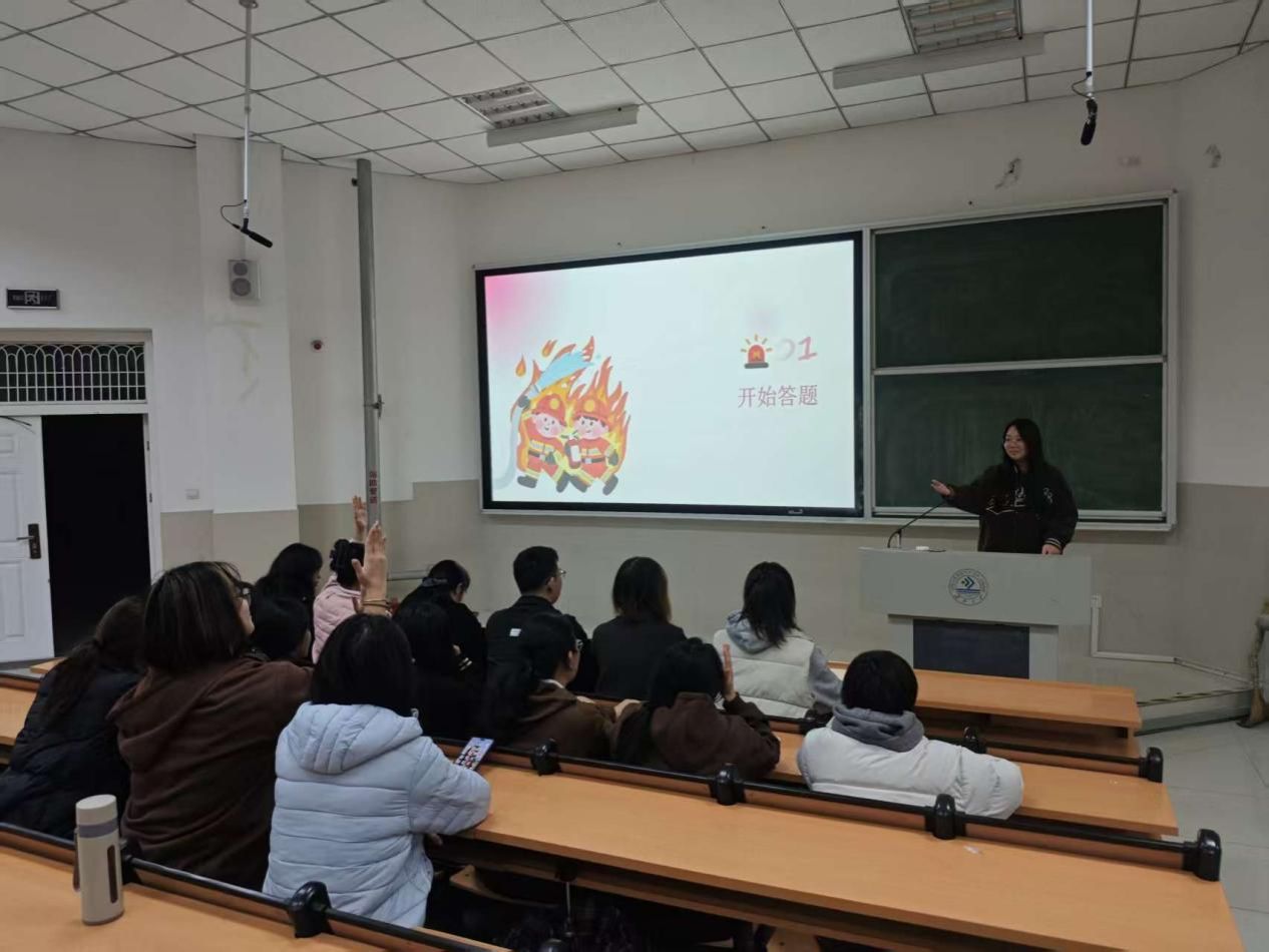 活动前期,同学们认真搜集消防知识,了解相关消防法规,以及校园防火、应急处置等实操知识。活动当晚,先由黄凌云同学简单讲解了部分消防知识,针对日常容易忽略的消防隐患和日常校园逃生技巧进行了重点讲解。在此之后进行了消防知识答题环节,同学们沉着应答,在互动比拼中深化了知识记忆。活动结束后,李雅倩同学表示:“这次活动让我系统掌握了校园消防知识,以后会严格规范自身行为,也会主动向身边人普及,为平安校园助力。”
