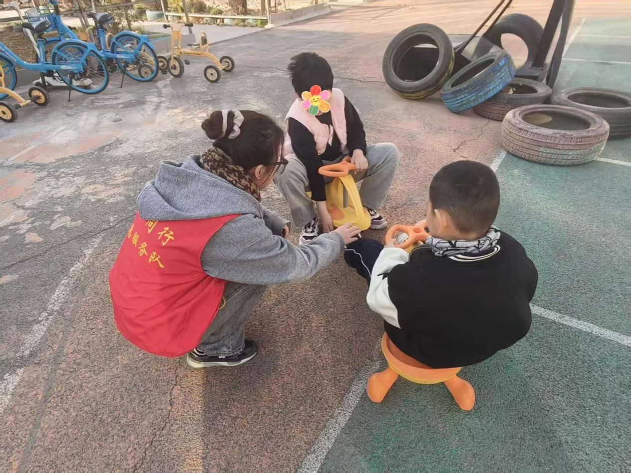 儿童小车静静伫立,成了拉近心距的纽带。志愿者悄然蹲身,居于两个孩子之间,指尖轻引,耐心指引他们探寻游戏的乐趣。原本疏离的身影,在并肩互动中渐渐靠近;原本拘谨的眉眼,在欢声笑语中慢慢舒展。当一个孩子独自乘上小车,志愿者便静静守在身旁,目光如暖灯,温柔追随着他的每一个动作,不言不语,却将守护与关怀藏进每一个细微的瞬间。游戏有声,陪伴无言,这份悄然滋生的默契,让“星星的孩子”在被关注中,寻得一份安稳与自在。