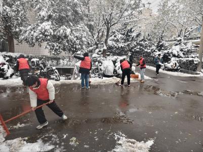 近两个小时的持续奋战,成效显著 —— 原本被积雪覆盖的道路逐渐显露,一条条干净通畅的 “暖心路” 在校园里延伸,所有重点通行区域的积雪、积冰被彻底清扫干净,为师生出行筑牢了安全防线。