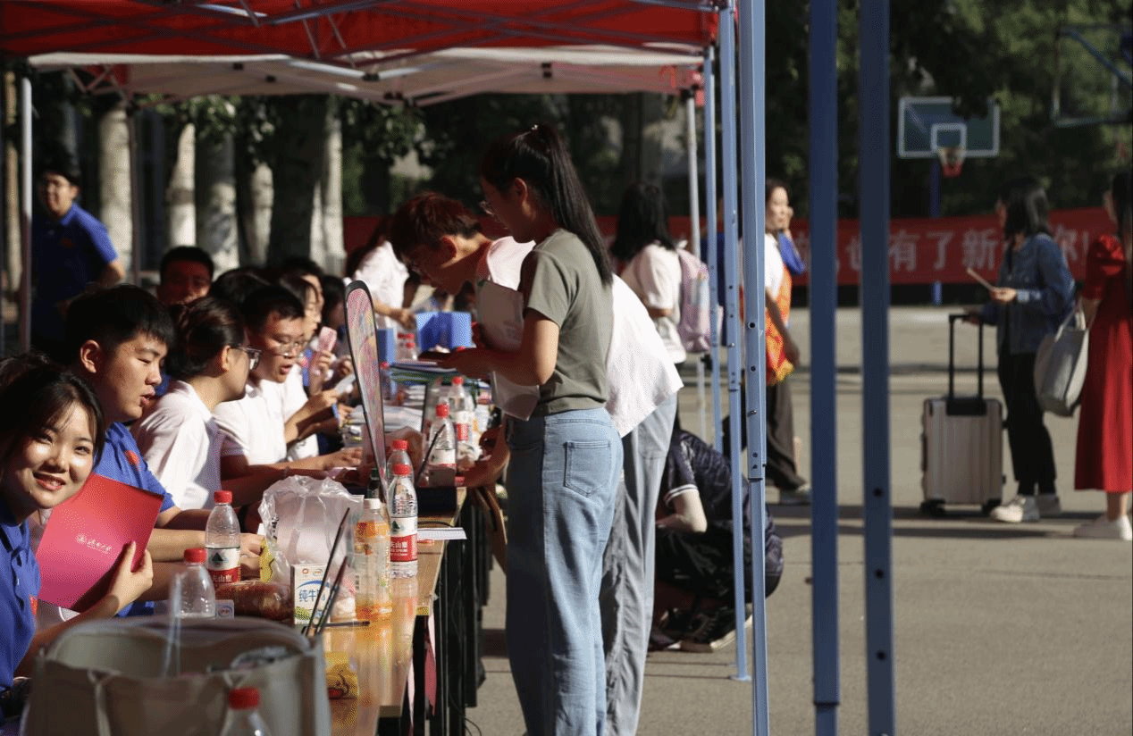 参与迎新工作的老师和志愿者顶着烈日,热情周到的接送我们的新生,接过行囊、生生问候无不传递着我们文旅人积极向上、担当奉献的精神;文旅学院的老师们在学院报道点有条不紊的为新生及家长提供咨询服务,为其答疑解惑,办理入学手续。志愿者们“—对—”的爱心服务为新生搭建了一条有温度的迎新通道。他们穿梭在学院报道点、教学楼、宿舍楼、校园餐厅,随处可见他们忙碌的身影,让每一位报到的新生倍感温暖。