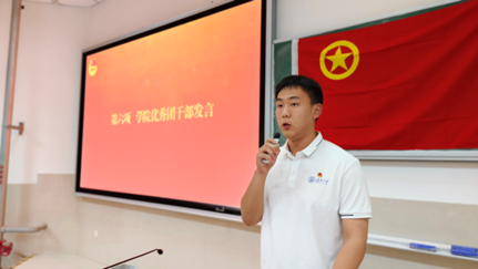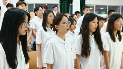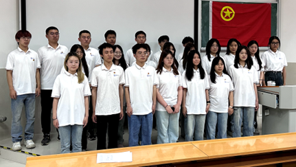新发展团员代表、优秀团干部及学院团委书记分别发表讲话。新发展团员代表和优秀团干部号召全体团员时刻牢记团员身份,以团员标准严格要求自己。学院团委书记吕龙飞老师对新发展团员的加入表示热烈欢迎和衷心祝贺,同时对他们提出三点要求。一是要坚定理想信念,保持对党和人民的忠诚,胸怀爱国理想、笃行报国之志;二是要勇于担当,敢于在实践中锻炼自己,发挥模范先锋作用,做学院优良风气的营造者和示范者;三是要攻坚克难,面对困难与挑战,迎难而上,在学习和生活中争当先锋、勇担责任、引领风尚,为学院和团组织发展贡献力量。仪式最后,全体参会人员高唱中国共产主义青年团团歌,新发展团员和基层团干部合影留念,为入团仪式画上圆满句号。