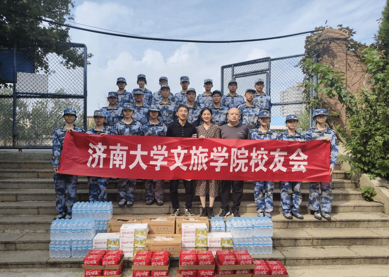99届优秀校友翟川、15届优秀校友阎晓彤为正在烈日下刻苦训练的新生们送上了清凉的水果、饮品、矿泉水等物资。他们心系母校,关心学弟学妹们的成长,以实际行动感恩学院的栽培,以此方式给予新生亲切问候与祝福。