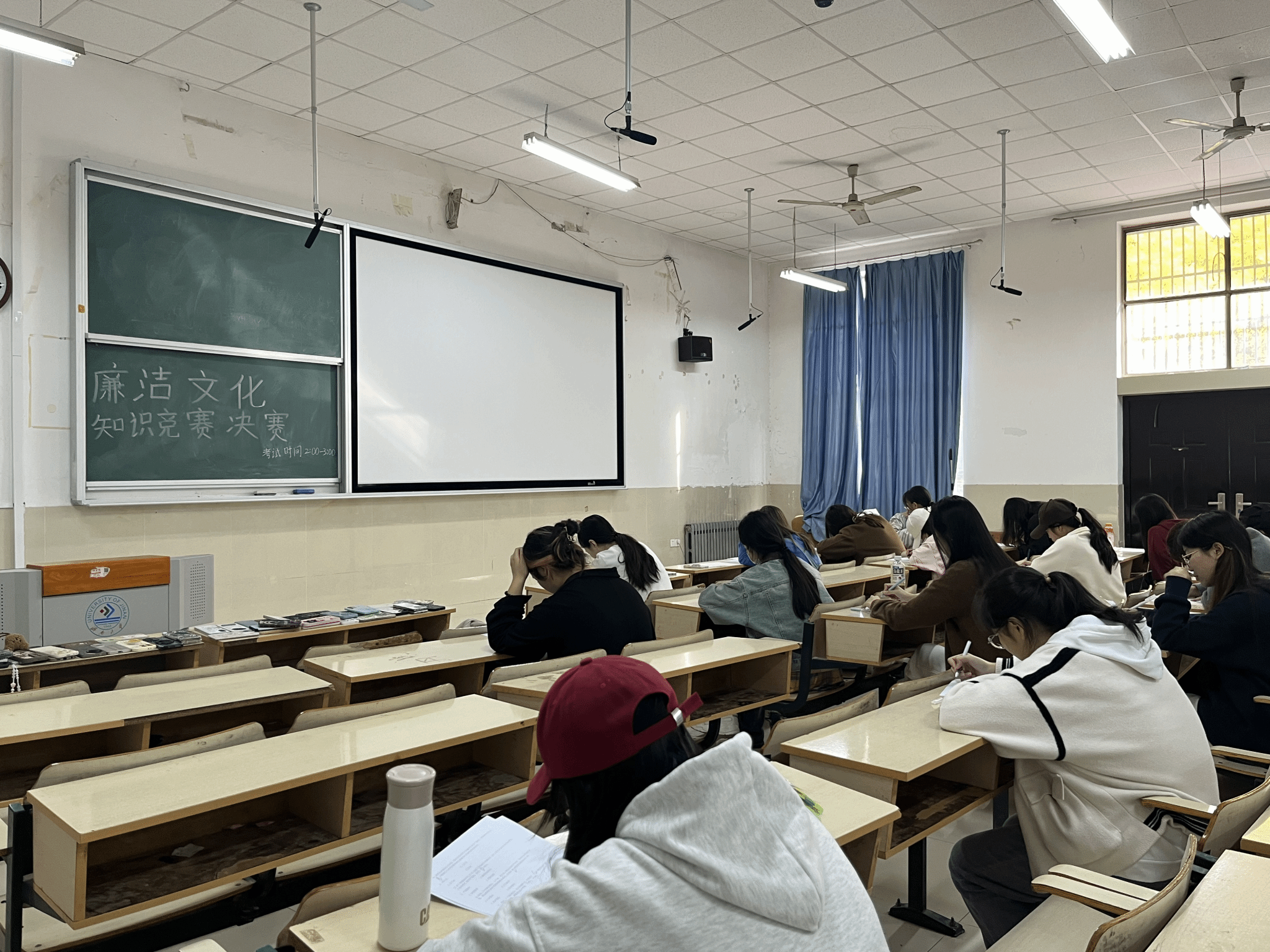 成功举办以“思想之力引航向,廉洁之心筑根基”为主题的廉洁文化知识竞赛决赛,142名同学积极参与。