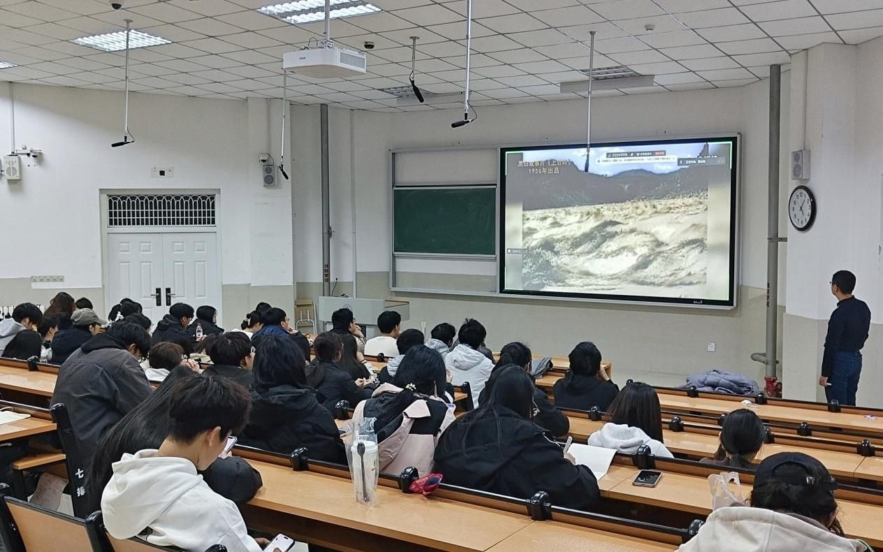 吕龙飞老师首先播放了电影《上甘岭》的插曲《我的祖国》,歌词真挚朴实,亲切生动,表达了志愿军战士对祖国和家乡的深切眷恋,以及他们英勇无畏的英雄气概。