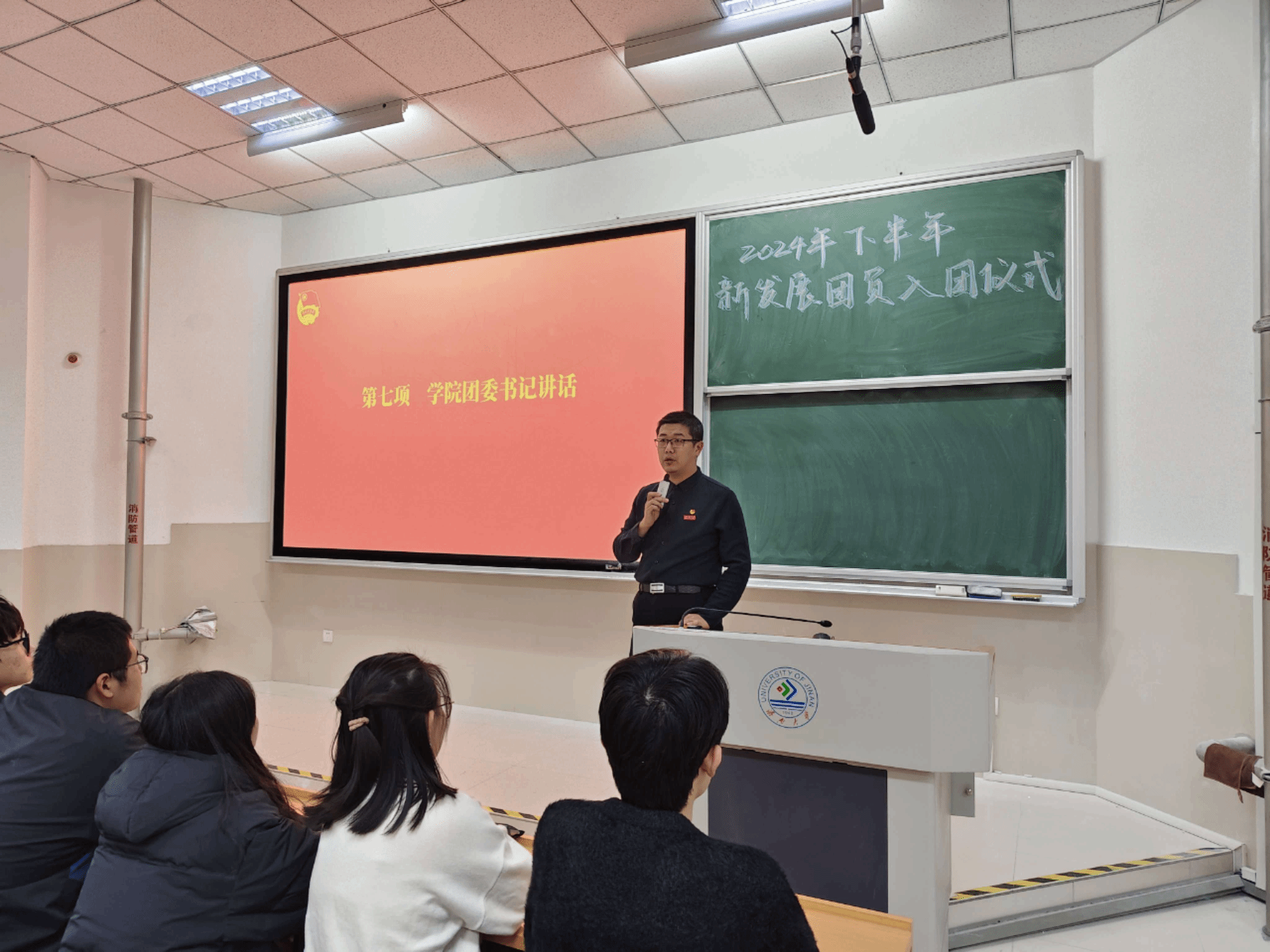 于D3J202举行了2024年度新发展团员入团仪式,仪式由李超然同学主持,学院团委书记吕龙飞老师、新发展团员及所属团支部全体委员共计七十余人参与了本次活动。