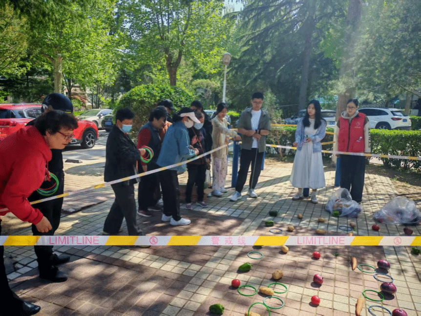活动开始前,志愿者们提前到达场地,协助运动会组织方完成场地布置,维持现场秩序。此次趣味运动会设有掷沙包、套圈、夹乒乓球、串珠等多种项目。活动开始,“逐光”志愿者与舜玉社区居民默契配合,分工协作顺利完成各项游戏任务。他们积极帮助掷沙包的社区居民调整站位、分享投掷技巧。在套圈项目中,他们穿梭于人群维护秩序、记录成绩,还根据投掷距离为社区居民提供力度把控建议等。志愿者们与社区居民在深度互动中,搭建高校与社区常态化合作平台推动“实践育人”与“社区建设”双向赋能,营造互助友爱、共建共享的社区氛围,传递青春正能量。志愿者孙元伟表示:“此次活动深入社区,让我认识到青年力量带动社区的重要性,在日后的学习生活中我会更多的将理论应用于实践,做文明风尚的传播者。”