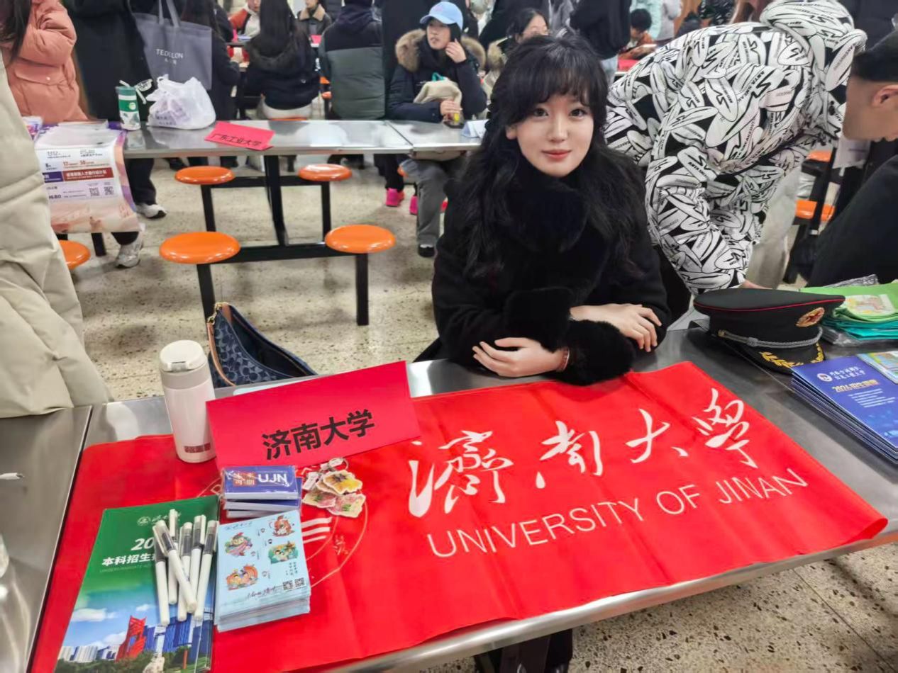 的办学底蕴、学科实力与招生情况。她将数据融入自己的大学成长体验,分享了图书馆的伏案时光、社团活动的欢声笑语,让济大生活变得真实可感。互动环节中,她耐心解答同学们关于专业选择、校园生活的疑问,并留下联系方式以便后续交流。