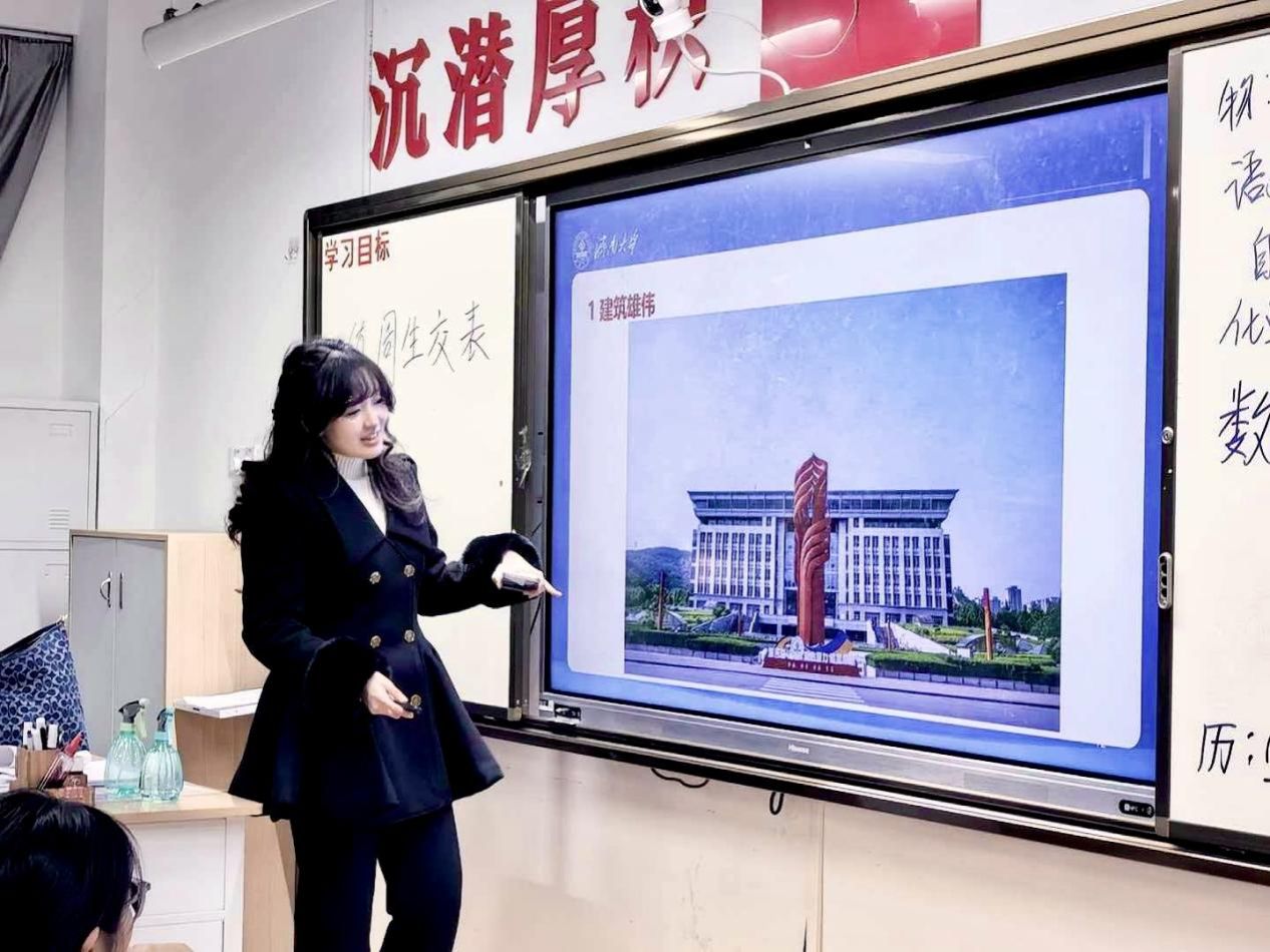 旅管2502班学生侯姝君怀着对高中母校的深深眷恋,以济大宣讲员的身份,回到太原新希望双语学校,开展了一场以宣讲为桥、以青春为契的社会实践。