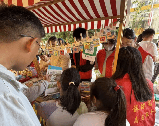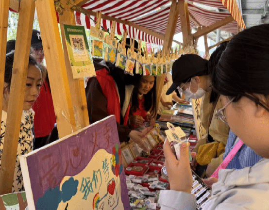 活动现场暖意融融、爱心涌动,身着红色志愿马甲的青年身影,成为烟火街巷里最亮眼的风景线。志愿者们以饱满的热情、真诚的态度投入服务,主动向前,耐心向往来市民与同学介绍“明日儿童”公益项目的帮扶宗旨,细致讲述每一件义卖物品背后,孤独症儿童用心创作、反复打磨的暖心故事。